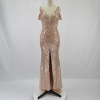 Großhandel neue V-Ausschnitt geteilt ärmellose Meerjungfrau lange Abschluss ball Pailletten Abend Abschluss ball Party kleid für Frauen