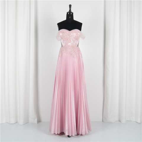 Hochwertige sexy schulter freie Falten perlen rosa lange plus Frauen lange Abendkleider