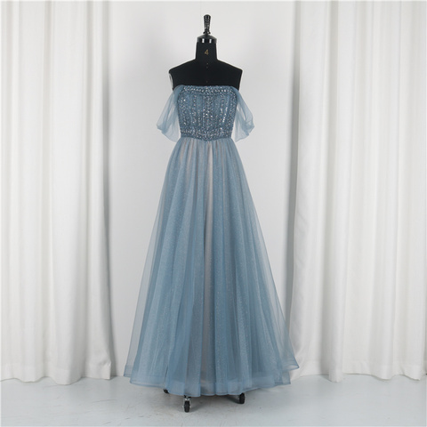Fabrik Direct Selling Weg Von Schulter Tüll Perlen Kleider Abend Abendessen Kleid Frauen Abendkleid