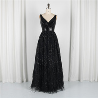 Hochwertige sexy Spaghetti träger Perlen glänzenden Tüll Abendkleid Kleider schwarze Kleider Frauen Abend